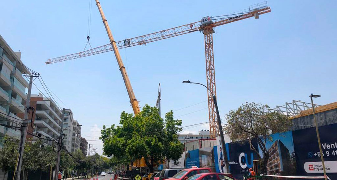 Proceso de montaje grúa torre Liebherr EC-B en el proyecto Edificio CU. Fotografía gentileza Nicolás Arenas, Gerente de Gestión y Sostenibilidad, Constructora Bravo Izquierdo.